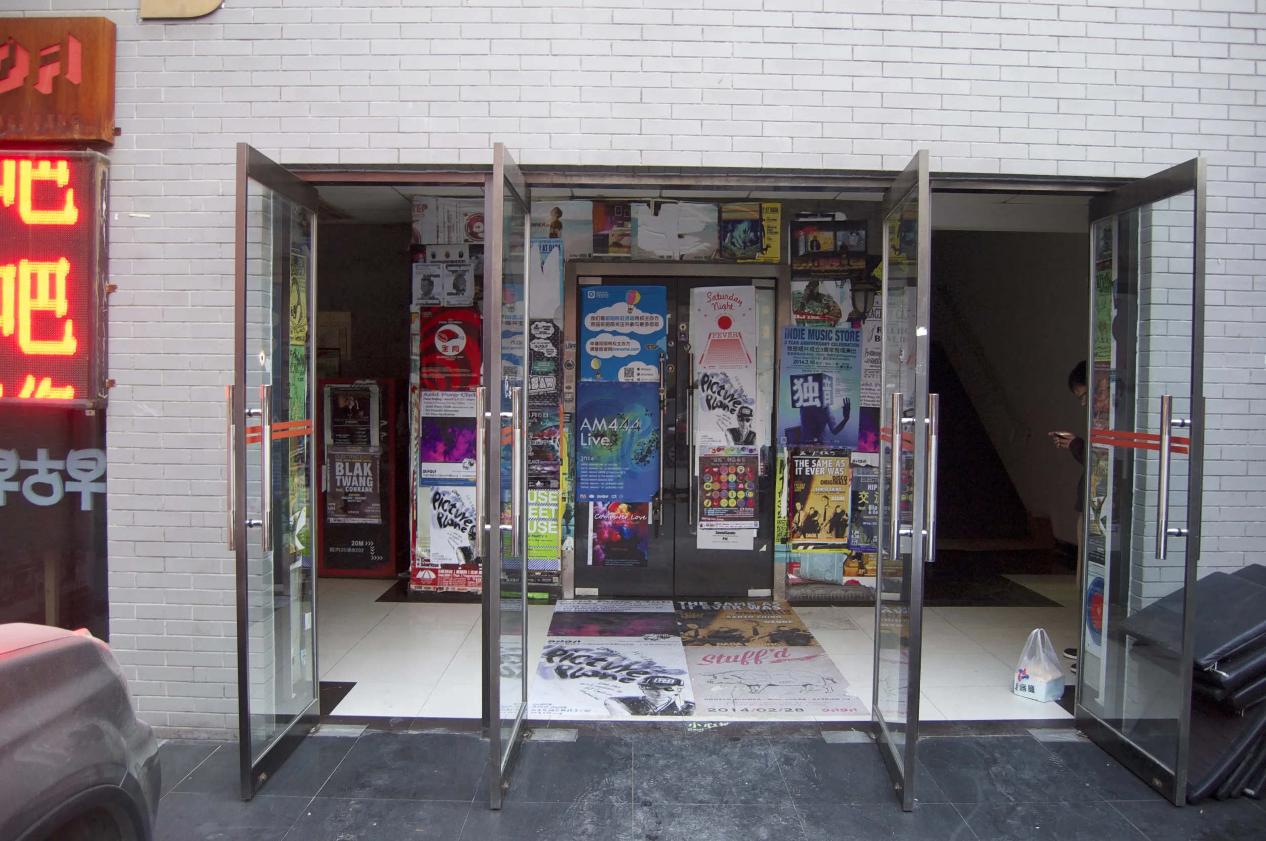 After bidding farewell to Hengheng and her husband (and promising to visit them again), Tom and I took the subway to the up and coming Gulou District, a section of hutong (ancient alleyways) between the Drum Tower and Bell Tower. I read that this part of town was experiencing a cultural makeover, and wanted to do some exploring. Tom took me to Dada (pictured below), a hip club that also screens movies every now and then, but it wasn't open when we got there.