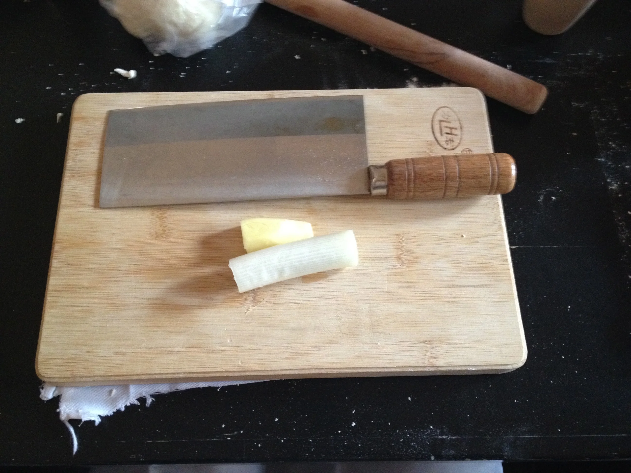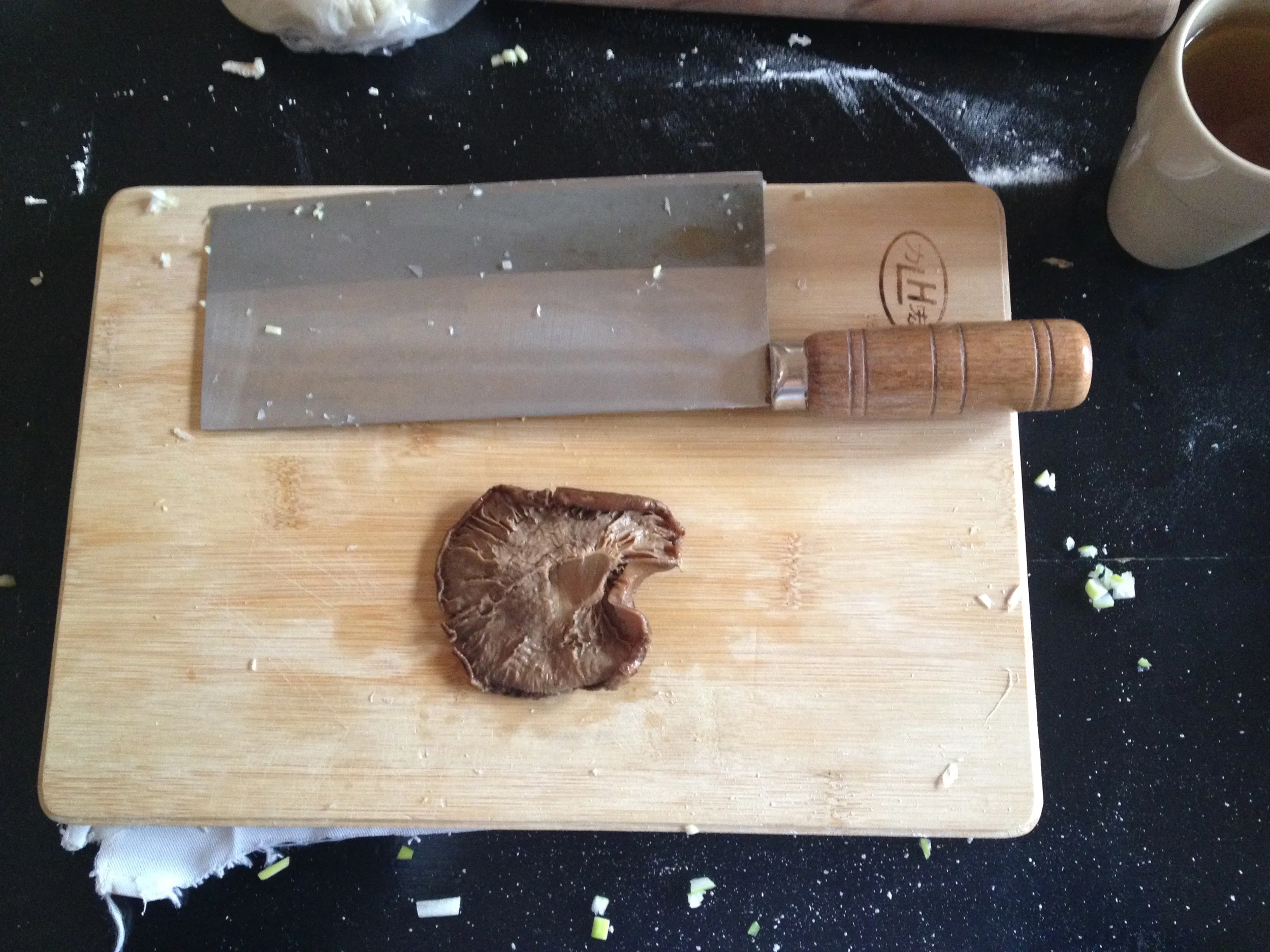 After sitting down and introducing ourselves to the other people in attendance, we got to work chopping ingredients for what would become two different types of dumpling fillings. The vegetarian one consisted of mainly smoked tofu, shiitake mushroom, vermicelli, and carrots. The meat one had pork and pumpkin, although other vegetables like cabbage, zucchini and eggplant can also be used. Next, we went to work on the dough, a 4 to one ratio of high-gluten flour to water. High-gluten flour works well for dumplings since it adds to the elasticity and chewiness of the dough. After kneading for several minutes, we wrapped the dough in saran wrap to let it rise, set it aside, and watched as the fillings were prepared by one of BSK's master dumpling chefs. Soy sauce (dark and light), white pepper, chicken bullion, and some special spices were added to the ingredients us students had chopped earlier, to create the two different fillings.