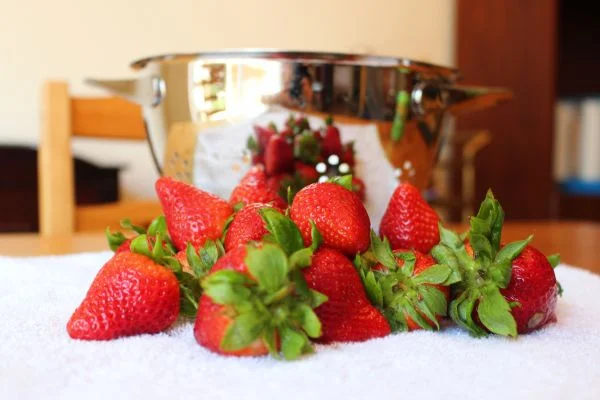 1. Rinse your strawberries in a colander and let them dry on a kitchen towel.