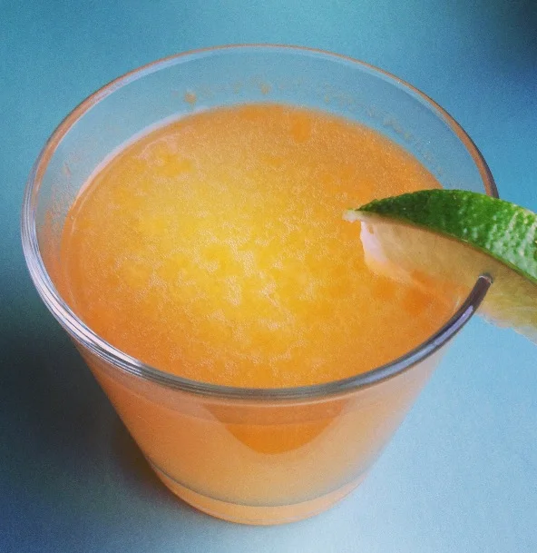 Pour purée into glass. Add gin and stir until a smooth consistency is reached. Add tonic and ice (if desired) and mix. Garnish with a lime slice.